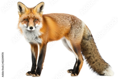 A majestic red fox standing in front of a plain white background. Perfect for various design projects