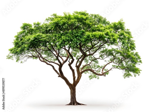 A Majestic Rosewood Tree with Lush Foliage on a Plain White Background