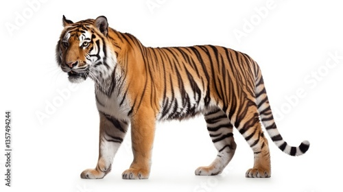 A Majestic Tiger Walking Isolated on White Background