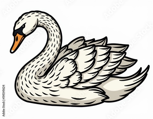 A majestic white swan soars majestically against a serene background, its elegant feathers glistening in vibrant detail