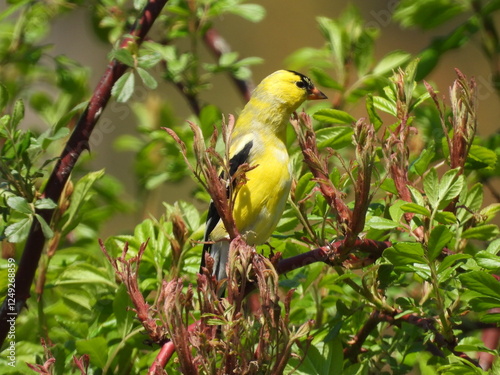 american, goldfinch, yellow, wild, bird, bird, conservation, habitat, environment, avian, ornithology, nature, wildlife, photo, natural, beauty, beautiful, life, birding, birding, observation, birding, green, pretty, photogenic, finch, leaf, leaf, songbird, passerine, fauna, thorny, rose, thorn, pennsylvania, spring, april, springtime, us, america, male