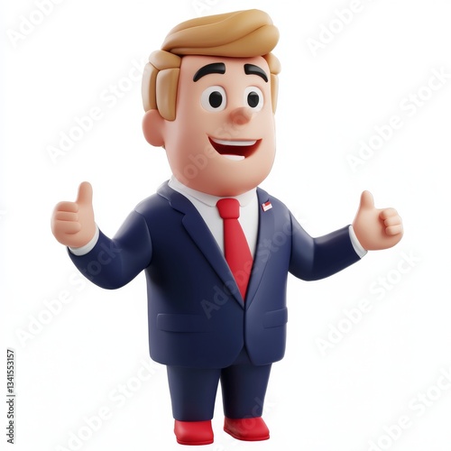 male, guy, politician, suit, attaching, three-dimensional, cartoon, character, business, businessman, funny, person, illustration, expression, fun