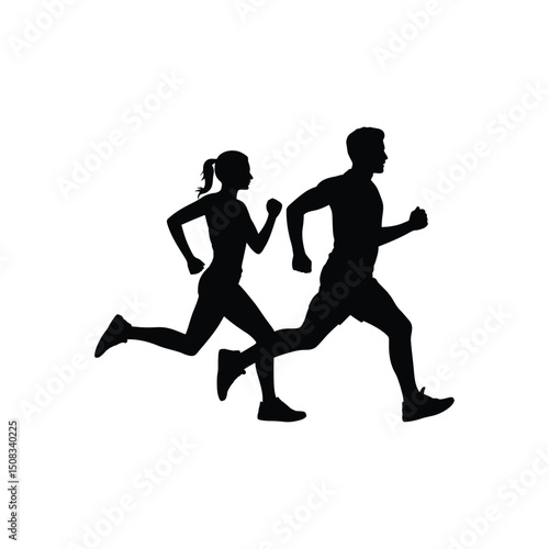 running, vector, illustration, couple, man, woman, jog, fitness, exercise, sprint, physical exercise, athlete, jogging, people, sport, activity, cardio, marathon, urban, outdoors, active, lifestyle, motion, speed, competition, training, race, graphic, design, clip art, healthy, teamwork, duet, silhouette, art, draw, editable, cartoon, colourful, outline, modern, flat, pose, shape, movement, track