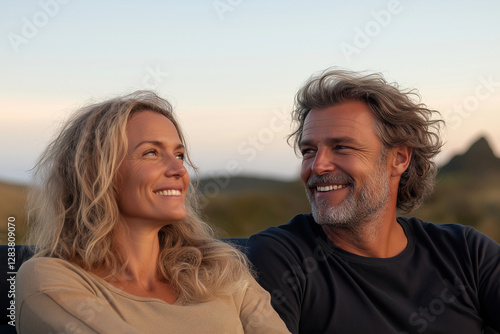 adult, affection, aged, attractive, beautiful, black, camera, casual attire, caucasian, cheerful, couple, elderly, expression, female, friendly, gesture, grey, hair, photogenic, happiness, happy, healthy, hugging, husband, lifestyle, logotype, looking, love, male, man, mature, old, outdoors, park, person, portrait, human relationships, retirement, romance, romantic, senior, shirt, sitting, smiling, tan, together, vacation, wearing, wife