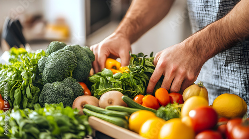 hand, man, arranging, fresh, fruit, vegetable, healthy, produce, kitchen, broccoli, tomatoes, green, organic, chopping, healthy lifestyle, nourishment, cooking, food, closeup, natural, market, diet, vegetarian, summer, healthy eating, preparation, colourful, male, farm, seasonal, fresh produce, grocery, cooking ingredient, wellness, variety, vibrant, ingredient, lifestyle, health, fresh food, home cooking, table, culinary