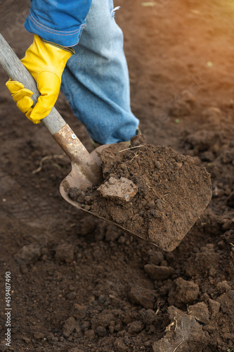 agricultural, gardening, shovel, spade, farming, dirt, ground, man, work, dig, tool, overall, closeup, cultivate, outdoors, person, equipment, farmland, boot, leg, yellow, gloved, land, grow, nature, organic, people, foot, vertical, turf, rural, field, earth, activity, occupation, men at work, excavating, outside, sunbeam, seasonal, instrument, muddy, holding