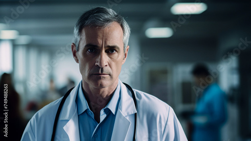 A man doctor in a hospital, indicating a medical professional working in a healthcare setting