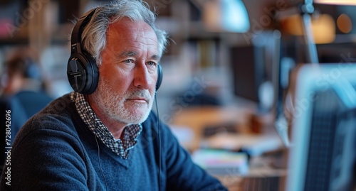 A man immersed in his own world, lost in the beats of his headphones, his face a mask of concentration and his clothing a reflection of his personal style