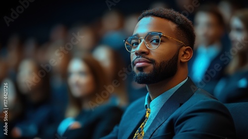 man, business, conference, audience, formal, suit, goggles, serious, expression, event, professional, attire, sharpened, engagement, discussion, setting, technology, presentation, leadership, communication, networking, atmosphere, intelligence, diversity, insight, learning, collaboration, motivation, inspiration, strategy, success, team, growth, innovation, idea, cognition, interaction, skill, development, vision, future, opportunity, respect, professionalism, dynamic, influence, connection, ambition