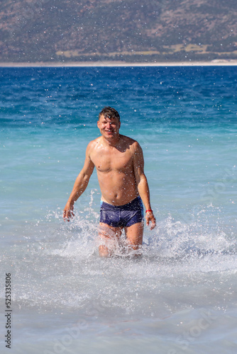 travel, beach, person, ocean, lifestyle, water, nature, man, vacation, summer, sea, holiday, blue, people, shore, 1, leisure, body, guy, sand, trunk, wave, young, male, healthy, relax, freedom, fit, muscular