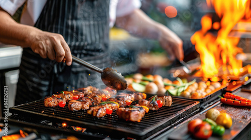 food, meat, bar-b-q, grill, cook, bar-b-q, dinner, meal, smoke, skewer, summer, roast, hot, lunch, fire, outdoors, delicious, beef, chicken, picnic, pork meat, party, steak, fresh, people, preparation, nature, cookery, sauce, horizontal, background, charcoal, flames, closeup, bar-b-q, tasty, vegetable, heat, street, photo, epicure, eatery, stove, market