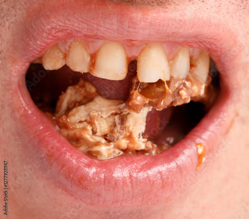 man, eating, sandwich, lot, meat, big, almost, mouth, dentistry, covering, dental, entire, dentist, care, health, treatment, oral, teeth, medicals, medicine, hygiene, closeup, human, denture, cavity, gum, white, patient, macro, bad, healthy, cary, decay, clinic, disease, closeup, person, background, smile, broken