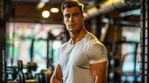 male, fitness, man, young, adult, photogenic, gym, sport, strength, athlete, healthy, guy, muscular, strong, caucasian, power, body, fit, physical exercise, person, exercise, bodybuilder, muscle, lifestyle, training, indoor, equipment, model, portrait, attractive, 1, health, activewear, active, triceps, weight, bicep, physical, looking, posing, abs, background, standing, trainer, chest, beautiful, modern, wellness, white