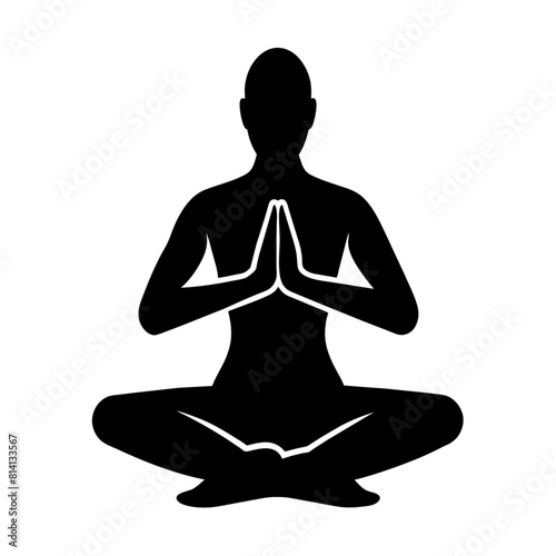 A man is practicing yoga in a meditative manner with his hands together vector silhouette (8)