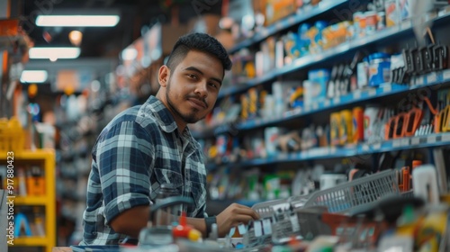 store, male, adult, man, person, supermarket, shopping, market, retail, client, choosing, consumerism, lifestyle, young, choice, smiling, indoor, business, portrait, sale, buy, food, grocery, caucasian, 1, casual attire, consumer, shelf, freshness, happy, american, purchase, holding, product, price, equipment, cheerful, label, assortment, standing, looking, aisle, merchandise, working, horizontal, healthy, apron, one person, shopper