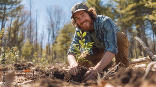 environment, forest, nature, man, planting, germ bud, dirtied, conservation, outdoors, sustainability, ecology, smiling, happy, cheerful, beard, cap, spring, sunlight, tree, leaf, earth, volunteer, environmentally friendly, timberland, healthy, growth, young adult, community, reforestation, conservationist, preserve, daylight, flora, ground, trunk, tree branch, natural, lifestyle, positive, commitment, effort, wood, sky, renewable
