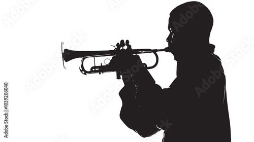 A man playing Trumpet silhouette isolated on white background