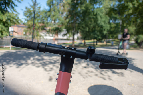 electric, scooter, road, signs, street, traffic, safety, orange, red, activity, bicycle, bike, casual attire, city, cycle, drive, eco, electricity, fast, fun, contraption, generation, kick, modern, motion, move, outdoors, park, people, power, ride, rider, summer, technology, transport, transportation, urban, vehicle, wheel, young