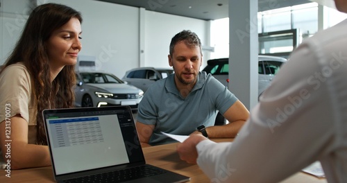 man, woman, signs, contract, manager, sell, seller, buyer, speak, smile, couple, purchase, clearance, laptop, use, document, deal, family, car, client, showroom, business, businessman, adult, horizontal, people, shop, new, service, communication, transportation, buy, car rental, work, sale, retail, indoor
