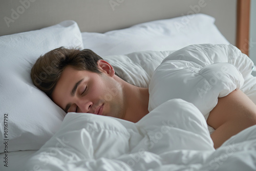 A man sleeping in bed, in a comfortable and peaceful atmosphere