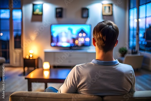 man, television, night, relaxation, living room, entertainment, cosy, interior, home, leisure, screen, evening, technology, indoor, dark, lifestyle, comfort, digital, smart, rest, night time, looking