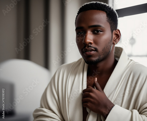 A man wearing a white robe standing in front of a window.