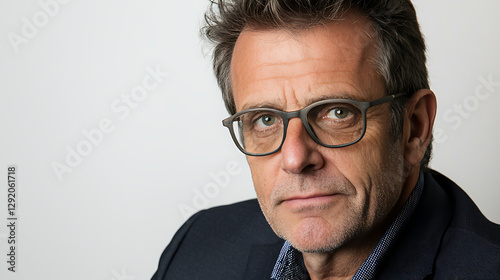 A man wearing glasses and a suit is looking at the camera. generated using AI