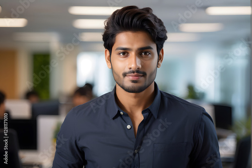 man, beard, black, shirt, standing, front, wall, smile, looking, portrait, young, adult, face, camera, male, guy, confident, person, photogenic, happy, attractive, background, model, isolated, casual attire, expression, business, lifestyle, 1, white, cheerful, studio, indian, asian, hair, serious, smart, success, cool, closeup, stylish, modern, positive, fashion, professional, businessman, posing, style, happiness