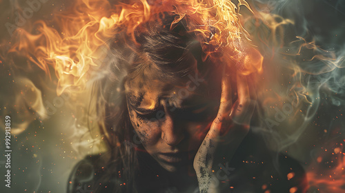 man, head, stress, person, cephalalgia, problem, emotion, burnout, burn, concept, depressed, stressed, business, exhausted, pain, work, sleepy, depression, background, fire, frustration, male, face, hot, anxiety, frustrated, fear, health, expression, flames, angry, adult, young, psychology, sick, unhappy, upset, woman, pressure, men at work, hair, mind, emotional, artificial intelligence