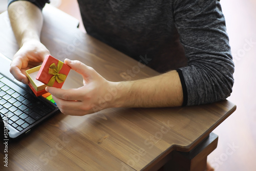 friday, man, e-business, holiday, concept, client, promotion, education, greeting, boy, togetherness, birthday gift, congratulating, happiness, domestic life, copy space, communication, wrapped, day, hand, order, delivering, cyberspace, laptop, computer, event, gift, home, technology, indoor, gift box, children, wireless technology, computer monitor, window, home interior, buying, pride, gratitude, closeup, celebration, lifestyle, cardboard box