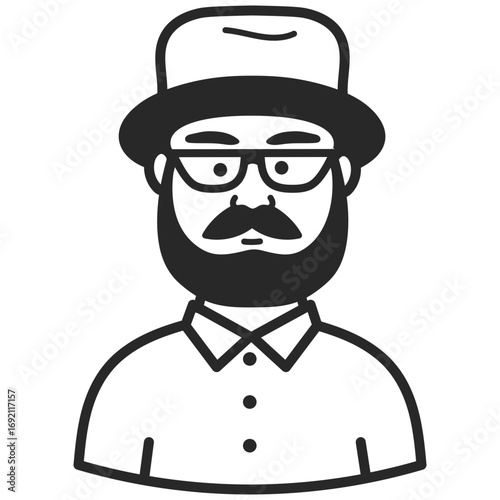 A man with beard. Portraits of people black outline stroke. Vector pictures of avatar icon.