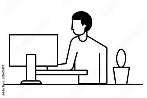 computer, business, office, laptop, desk, woman, silhouette, people, sitting, work, chair, illustration, vector, cartoon, cyberspace, businessman, person, working, job, table, technology, typing, icon, drawing