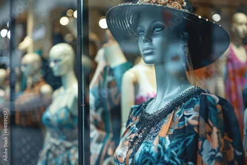 A mannequin dressed in a hat and displayed in a store window