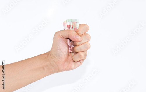 hand, banknote, money, white, isolated, currency, business, finance, cash, 100, background, loan, holding, businessman, paper, european, financial, investment, bill, giving, bank, arm, object, baht, thai, red