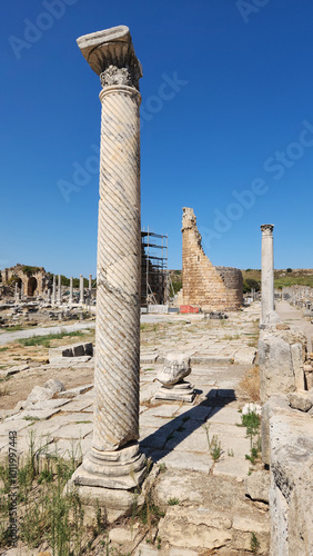 acropolis, anatolia, ancient city, ancient civilization, antalya, antique, archaeology, archaeology, architecture, art, background, beautiful, blue skies, civilisation, civilisation, colon, column, culture, daylight, hellenistic, heritage, historic, holiday, landmark, landmark, landscape, mediterranean, roman empire, ruin, tour tourism, touristic, travel, turkey, vacation