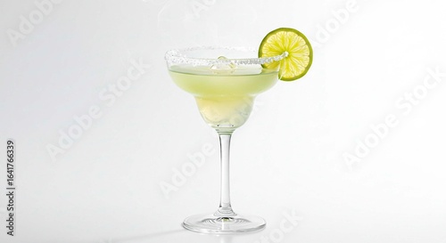 margarita, cocktail, glasses, stemmed, white background, drink, alcohol, beverage, refreshment, citrous, tequila, ice, party, celebration, bar, eatery, summer, tropical, vacation, holiday, lime, green, clear, transparent, cold, fresh, delicious, tasty, sweet, sour, alcoholic, mixed drink, garnish, slice, fruit, isolated, studio shot, closeup, still life, food photography, minimalist, simple, elegant, modern, classic, with