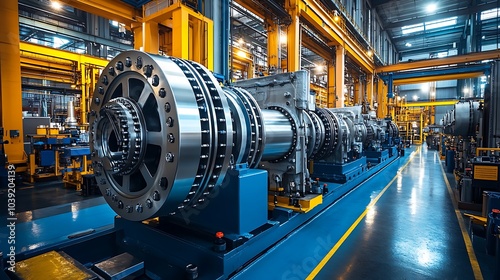 water pump, factory, industrial, steel, polished, large, intake, output, pipe, connected, complex, network, tube, machinery, equipment, manufacturing, production, engineering, technology, metal, stainless steel, industrial design