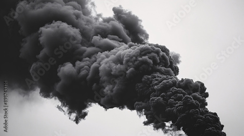 A massive plume of smoke billowing against a stark white sky, creating a dramatic and intense contrast