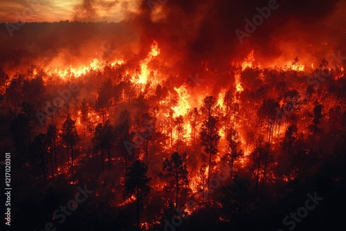 wildfire, fire, forest, blaze, inferno, flames, burning, destruction, natural, disaster, emergency, response, rescue, firefighting, environmental, crisis