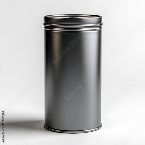 silver, can, metal, container, cardboard box, storage, lid, closed, isolated, white background, blank, product, shiny, studio shot, marketing, branding, commercial, contemporary, modern, minimalist, clean, generic, front view, single object, nobody, cut-out, closeup, detailed, professional, high-quality, realistic