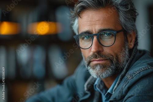 A mature, bespectacled man with striking facial hair in a contemplative pose, exuding wisdom