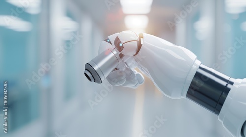 A medical robot using a high-tech device to measure a patients lung function in a respiratory care clinic, with copy space, high-resolution photo, realistic photo
