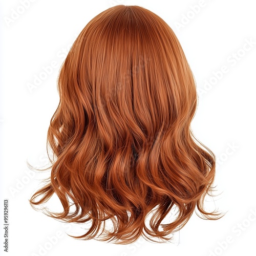 A medium-length wavy wig for women, in a light auburn shade, isolated on a white background