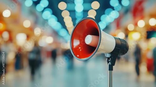 A megaphone in a high energy shopping environment on Black Friday event