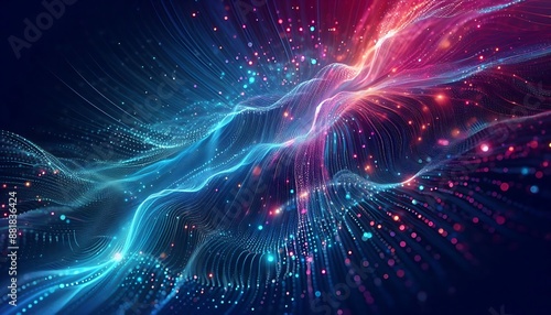 A mesmerizing abstract background showing a fluid digital wave of sparkling particles in blue , suggesting an innovative wallpaper concept and a beautiful aesthetic.Generative AI
