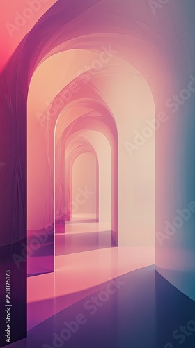 A mesmerizing abstract corridor with smooth arches, blending soft colors and light for a dreamlike atmosphere.