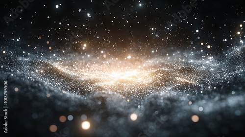 A mesmerizing cosmic scene showcasing a swirling galaxy filled with stars and glowing dust, representing the vastness of the universe.