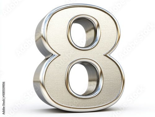 A metallic 3D representation of the number eight, showcasing a shiny and reflective surface.
