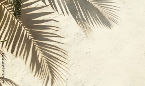 A minimalist abstract background for displaying products. Shadows from palm leaves. Spring and summer.