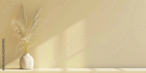 A minimalist aesthetic featuring a light creamy yellow backdrop, Balanced composition and smooth surfaces, Contemporary minimalist style